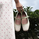 Material | 100% Cuero floater color vainilla estampado con flores |