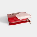 | Aplicaciones | Billetera de 3 cuerpos. Capacidad para 4 tarjetas. Bolsillo externo con cierre para efectivo. Tapa rectangular con detalle de corazón. Herrajes, broche y accesorios plateados. |