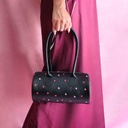 Detalles | Cartera en forma cilíndrica. Cierre y accesorios color plateado. |