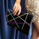 Tapa rectangular con tiras de 7 colores metalizados que forman una estrella.