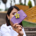 | Aplicaciones | Tarjetero con capacidad para 8 tarjetas 2 compartimentos medianos Compartimiento para efectivo con cierre Correa para cerrar el monedero y un broche de flor color damasco. Herrajes, broche y accesorios color plateado. |
