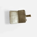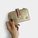 | Aplicaciones | Tarjetero con capacidad para 8 tarjetas 2 compartimentos medianos Compartimiento para efectivo con cierre plateado Correa para cerrar el monedero conformado por tiras metalizadas de color fucsia, celeste. cobre y dorado. Herrajes, broche y accesorios dorados. |