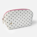 Material | 100% cuero floater hueso con estampado de puntos negros |