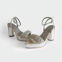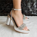 Aplicaciones | Acabado en punta. Correa para sujetar en el tobillo. Aplicación de tejidos en strass sobre el empeine. Borde de la falsa colore dorado. |