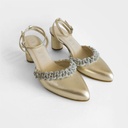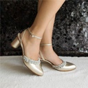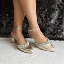 Aplicaciones | Correa para sujetar en el tobillo. Aplicación de tejidos en strass sobre el empeine. Borde de la falsa colore plateado. |